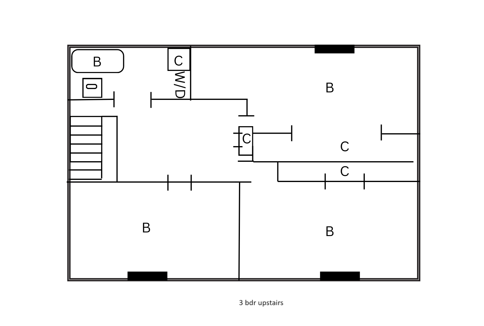Upstairs - Spacious bedrooms and hallway bathroom with washer and dryer hookups.