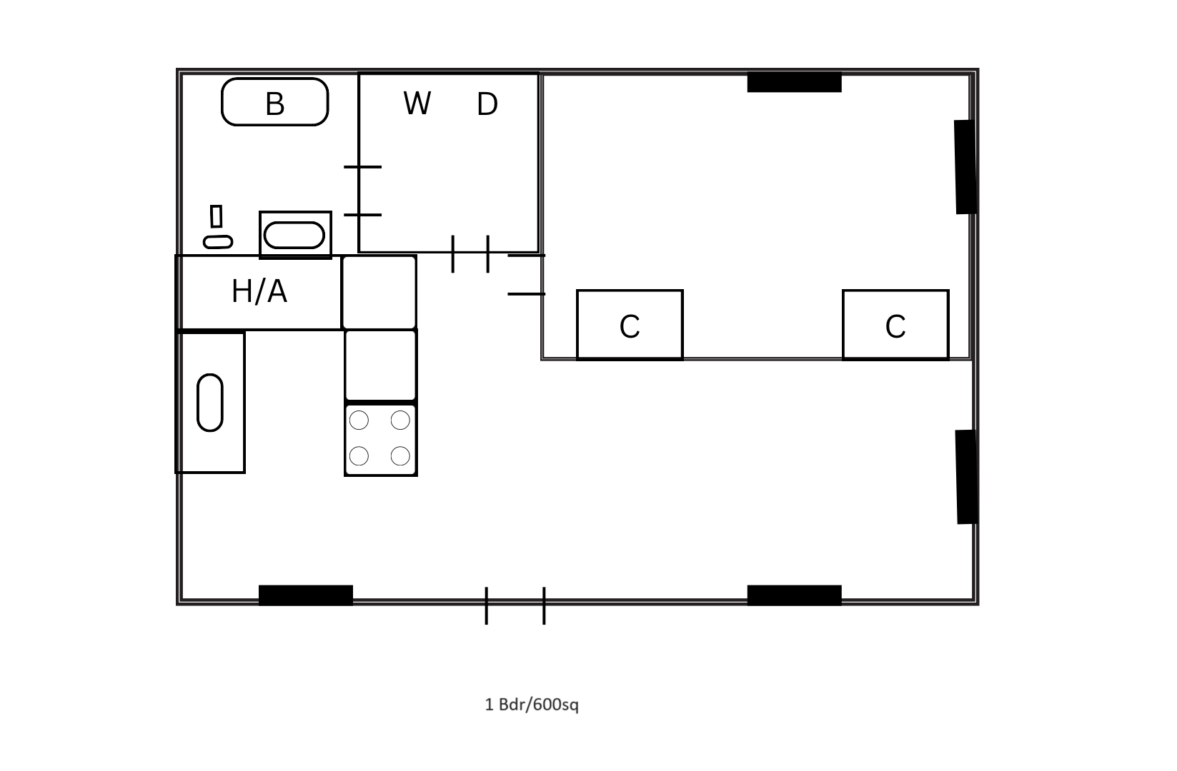 Spacious living room, designated dining area, washer and dryer hookups, full bathroom, two closets in the bedroom.